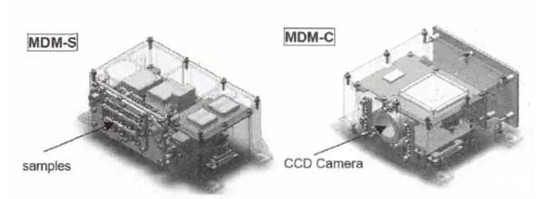 日本計劃在SLATS衛(wèi)星上搭載環(huán)境效應(yīng)探測器,進行空間環(huán)境的監(jiān)測及材料暴露試驗,這是首次在50 km軌道上開展材料暴露試驗。該暴露試驗通過兩個搭載模塊實施,分別為MDM-S和MDM-C(MDM為MateriasDegradation Monitor的縮寫),其中MDM-S是一個包含9種材料被動暴露試驗的樣品盒,而MDM-C是CCD,用于對暴露試驗中樣品的退化情況進行拍照。