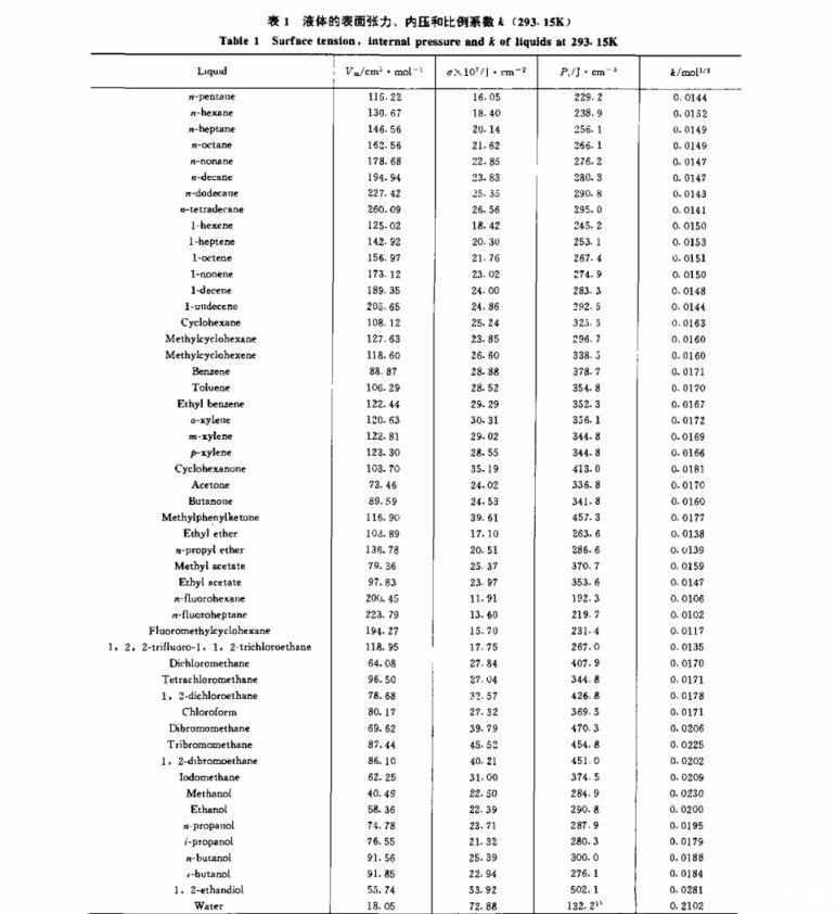鏈烷烴的表面張力與內(nèi)壓、比例、溫度的關(guān)系