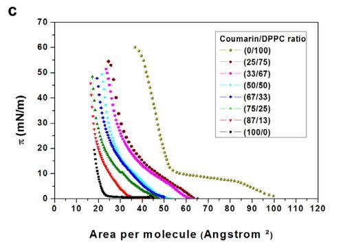 香豆素和磷脂混合物單分子層膜中的分子相互作用的界面性質(zhì)——結(jié)果和討論