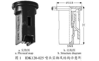 圖1 IDK120-025噴頭實物及結(jié)構(gòu)示意圖