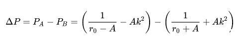 我們可以看到,在不同的地方,柱面的曲率都發(fā)生了變化,這種變化和表面張力一起,就導(dǎo)致了水柱當(dāng)中不同地方內(nèi)部壓力的變化。那么,我們?nèi)绾闻袛噙@種影響呢?我們說,如果A點(柱半徑縮小的地方)的壓力上升,B點壓力下降,那么: