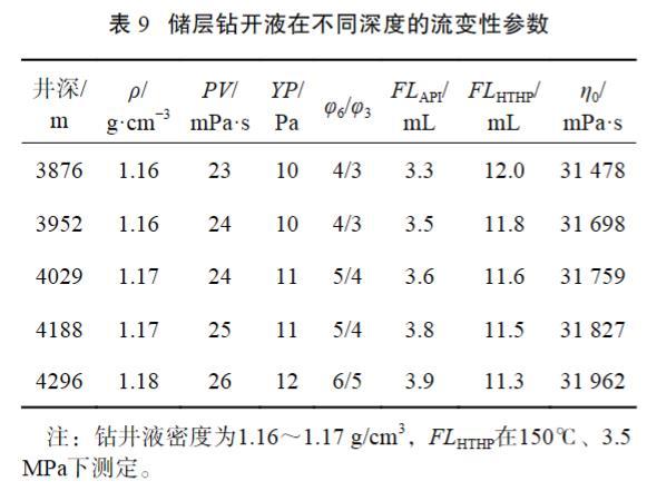 表9儲(chǔ)層鉆開液在不同深度的流變性參數(shù)