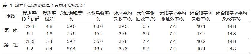 表1雙巖心流動實驗基本參數和實驗結果