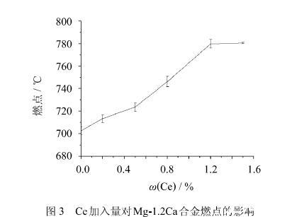 1)在一定范圍內(nèi),隨著Ce含量的增加,合金的燃點(diǎn)也隨之提高,當(dāng)Ce含量達(dá)到1.2%時(shí),合金的燃點(diǎn)能達(dá)到780℃。