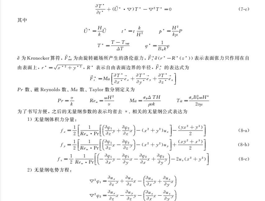 基于浮區法晶體生長中非均勻旋轉磁場對流控制研究工作鮮有的現狀,為了進一步完善外加旋轉磁場對浮區熔體的對流控制的理論研究,筆者引用了有限長-α模型的思想,建立了三維磁流體動力學模型,研究了微重力下外加二極對非均勻旋轉磁場對浮區熔體表面張力對流的控制作用。