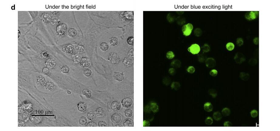 為了直接觀察G(IIKK)3I-NH2對細胞形態(tài)的影響,特別是在大多數(shù)肽分子轉移到膜上的較長培養(yǎng)時間后,我們進行了SEM檢查。未經處理的HeLa細胞顯示出正常的光滑表面,相鄰細胞之間具有良好的細胞間接觸(圖3c)。相比之下,用10 mM G(IIKK)3I-NH2處理24小時的HeLa細胞在細胞形態(tài)上表現(xiàn)出明顯的改變(圖3d)。觀察到收縮的細胞膜明顯破裂和溶解。除了細胞膜損傷外,一些處理過的細胞表現(xiàn)出嚴重的表面起泡(圖3d的右圖),這是細胞凋亡執(zhí)行階段的特征性事件[20]。
