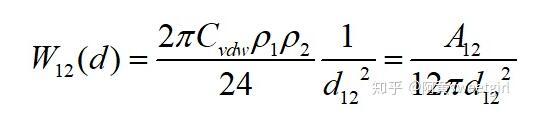 按照分子理論,兩個分子間存在Van der Waals力,對應(yīng)存在兩分子間的van der Waals相互作用勢,其表達式為