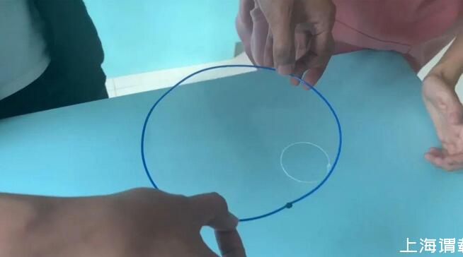 三、用手指將棉線圈中的薄膜扎破,會發現,棉線圈外的薄膜依舊完好無損。