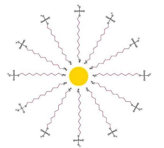 圖2.十二烷基硫酸鈉膠束的簡(jiǎn)單圖例。